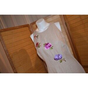 Vintage dress in excellent condition. The dress has gorgeous floral embroidery on front and back. Amazing, boho, anthro, free people style 2025 trends. Back zip with button up look, check out the pics. Easy to wear, extremely well preserved. Lined with hot pink fabric. Love how it peeks out side slit. Great, great find. Donna Morgan created.