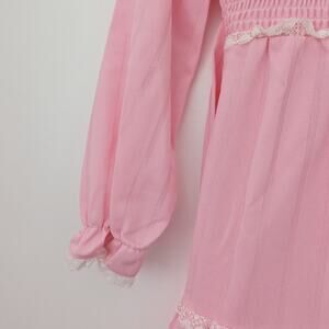 Vintage Dress Girls Size 8-9 Pink Maxi Smocked Long Sleeve Boho Hippie