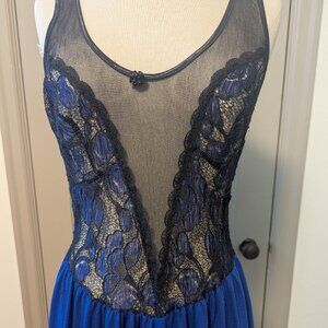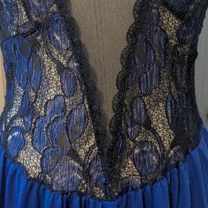Boudoir Vintage Dress Lace Mesh Whimsigoth, Vampy, Dark Romance, Coquette, Glam Lingerie, Nightgown, Old Hollywood, 1980’s, 1990’s, Lace Bodice, Royal Blue & Black, Full Slip Dress, Goth, Gothic
