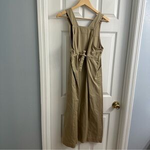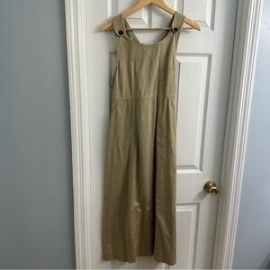 Vintage Dress Midi Modest Pinafore Khaki Work Minimalist Cotton Size Small