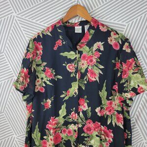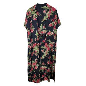 Vintage Dress Plus Size 20W 2X Maxi Floral Long Black Rose Layered Chiffon Alt