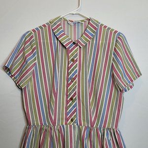 Vintage Dress Sears Perma Prest Stripes Peter Pan Collar Button Front Size 12/14
