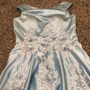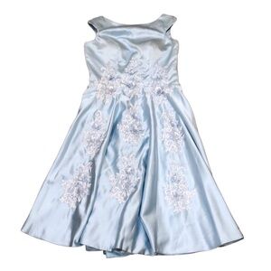 Vintage Dress Size XS Pastel Sky Blue Floral Lace Appliqué