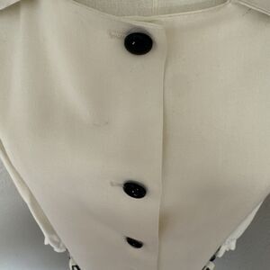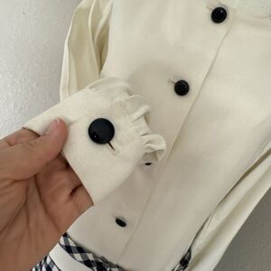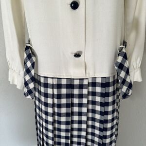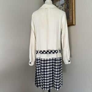 Vintage Dress Two Tones Button Up Plaid Solid Cream Blue Size S