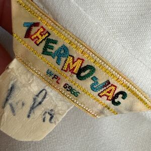 This vintage Thermo-Jac dress from the 1950s is a rare find for any rockabilly enthusiast. The two-tone navy and Beige plaid design, combined with solid cream blue, creates a unique and stylish look. The dress is made of high-quality cotton material and features a button-up front.
