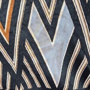 Vintage Women's Dress with an Ornate Zipper that zips Up the front. Geometric Brown, gray and Black pattern with a Belt. The colors have bled, see photos. There is a small hole on one shoulder and some of the hems are falling down. The size is gone but it measures about a Size 10. Short sleeves, about knee length depending on your height. Washed and ready to wear. See photos for measurements. Boho, Retro, Twee styles.