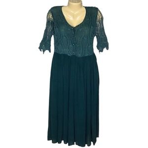 Vintage Dress Womens Small Green Crochet Top Pleated Skirt 90s Boho Grunge Midi