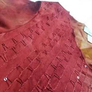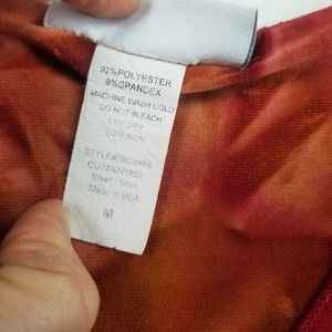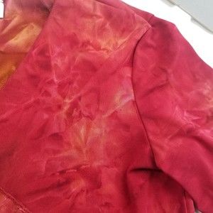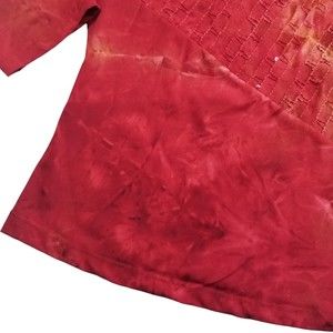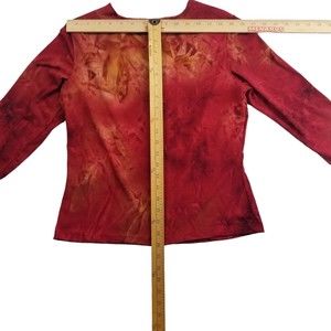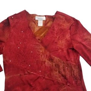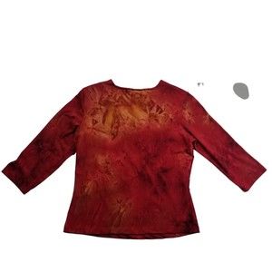 Vintage Dressbarn V Neck Top Women M Red Tie Dye 3/4 Slv Stretch Sequin 90s Y2K