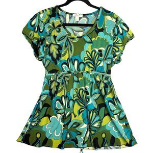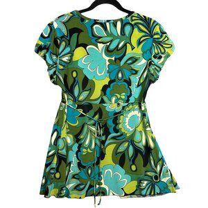 Vintage Dressbarn Y2K Babydoll Top Large Puff Sleeve Tie Waist Retro Mod