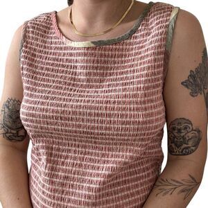 Vintage Dressbarn Womens Smock Stretchy Orange Striped Cotton Summer Tank Top 1X
