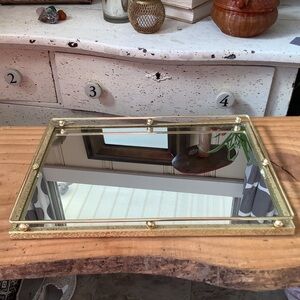 Rectangle shaped brass mirrored vanity tray, excellent condition