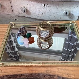 Vintage Dressing Table Brass Mirrored Vanity Tray