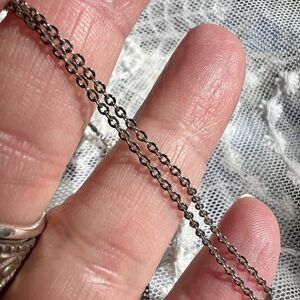 The back of the setting looks to be brass - it is patina’d and because of that I suspect this would work on a gold tone chain too. The chain is marked SN inside a diamond, standing for Snow & Stars/Nakagawa Corporation (an Import company out of Providence, RI).