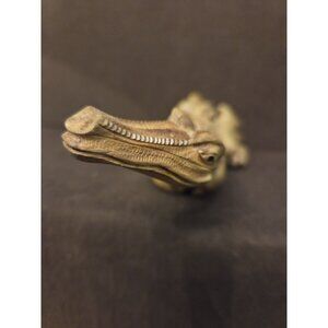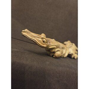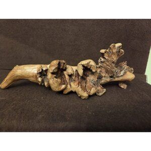 Carved out of driftwood this alligator is perched sunning himself. Measuring about 11 inches long.