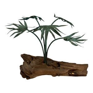 Vintage Driftwood Metal Palm Tree Sculpture Artist Signed MCM Tropical JH Brown