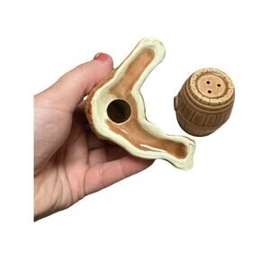 Vintage Drinking Chimp and Whiskey Barrel Salt and Pepper Shaker Set Ceramic