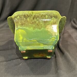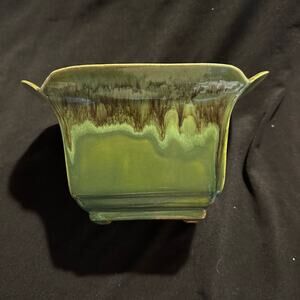 Vintage Drip Glaze Planter Rectangle Wide Rim 8x5"
