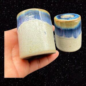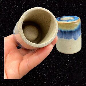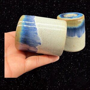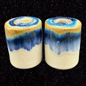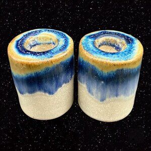Vintage Drip Graze Candle Stick Holder Set Studio Pottery Brown Blue 3”T 2”W.