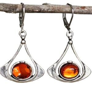 Vintage Drop Style Earrings Silver Electro-Plated & Synthetic Gemstone