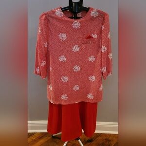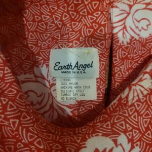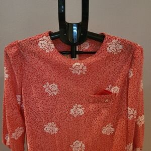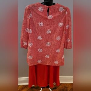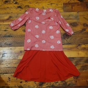 Vintage red floral dress from Earth Angel. Looks like skirt and top set, but is actually one piece. Good condition. Vintage size 12.