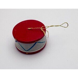 Vintage Drum Christmas Ornament Mini Red White Hand Painted