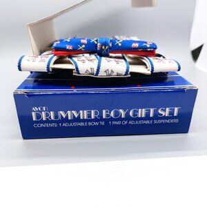 Vintage Drummer Boy Gift Set Bow Tie & Suspenders Christmas NIB 1985 Avon Rare