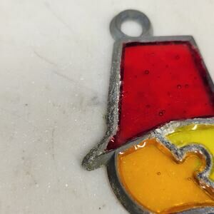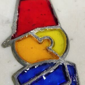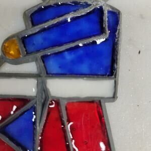 Vintage Drummer Boy Stained Glass Sun Catcher Blue Red Christmas Holiday