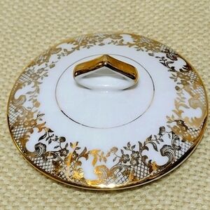Vintage, VTG, Vintage Sugar Bowl, Vintage Porcelain Sugar Bowl, Vintage Gold Filigree Porcelain