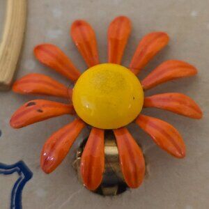 Vintage DuBarry Fifth Ave. Metal Enamel Daisy Flower Pin and Earrings 1960s