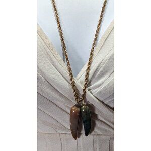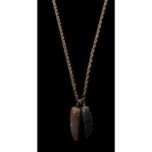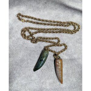Vintage Dual Carved Stone Fang Pendant Necklace