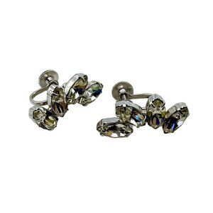 Vintage Duane Sparkling Climber Earrings, Silver Tone Screw Back with Clear