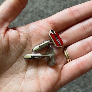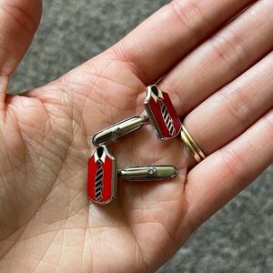 Vintage Duchamp London Red Cufflinks Black Tie Collared Shirt Mens Holiday Gift