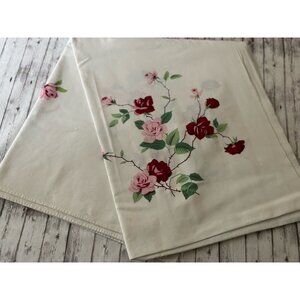 Vintage Duchess Rose Wilendur Vintage Tablecloth 54x66 Long Rectangle Cottage