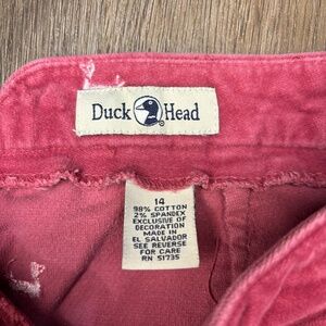 Duck Head Womens Size 14 Rose Pink Velvet Duck Embroidered Stretch Pants. Condition is Pre-owned. Please see photos for measurements. Shipped with USPS Ground Advantage.