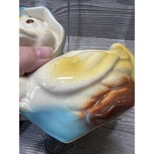 Vintage Duck Planter with Bonnet and Bow Mother Goose Ceramic Midcentury