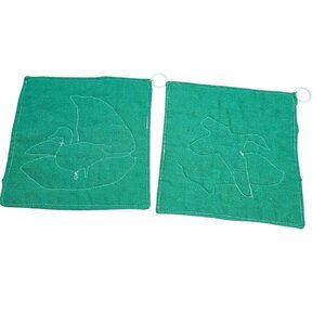 Vintage Duck Print Cotton Pot Holders Set Of 2 Hanging Loops Homemade 80s 90s