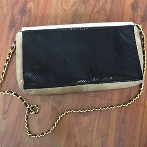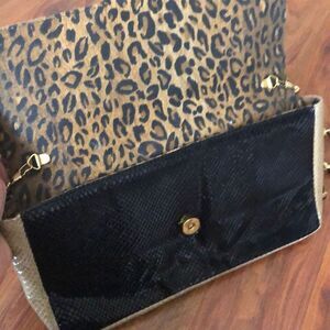 Vintage Due Fratelli Canada Three toned leather snake, skin, leopard purse, chain strap, removable clutch