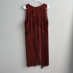 Vintage Duette Suede Leather Beaded Fringe Long Vest