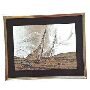 Vintage Dufex Foil Art Prints Sailing Ships Framed Gold Black Pair 10 X 8 each