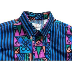 Vintage Duke Western Wear Aztec Southwestern Deco Shirt Size L Cowboy Retro 90s