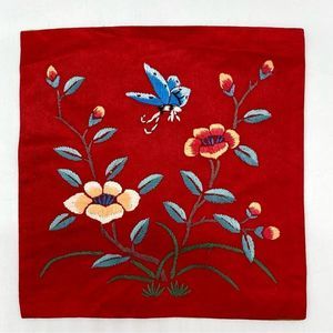 The intricate craftsmanship featured in these pieces is incomparable, with careful attention to detail that is beyond comparison. 100% Chinese silk, hand made and embroidered Ming birds, butterflies and flowers. Beautiful textile art work from The Silk Road Collection in the highest quality silk in green, gold, red, black and white, all lined with chartreuse fabric backing. Each measures approximately 6” x 6”