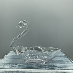Vintage Duncan Miller 1950s Clear Glass Swan Candy/Nut Dish 6” tall