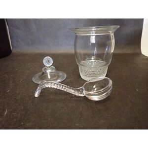 Vintage Duncan & Miller Clear Teardrop Texture Pebbled 3 Piece Glass Mustard Jar