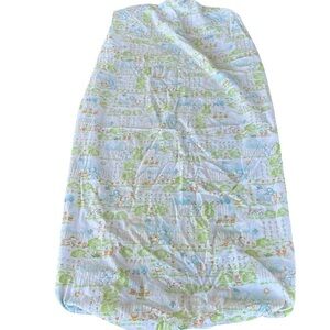 Vintage Dundee Mills Animals Gardening Fitted Crib Sheet. Adorable pastel pattern featuring a Bear, Bunny and Kitten gardening in the sunshine. Adorable!