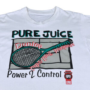 Vintage Dunlop Tennis Racquets Shirt Adult LARGE White 90s Super Long Power