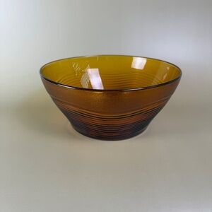 Vintage Duralex Amber Glass Serving Bowl | France | Large Ribbed Mid-Century