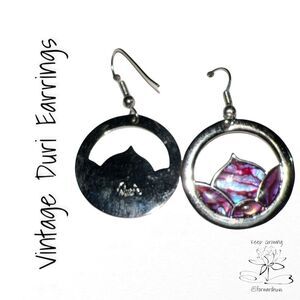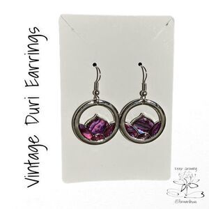 Vintage Duri Abalone Inlay Earrings | Silver Tone Design