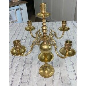 Vintage Dutch Brass Bronze Candelabra Holds 5 Candles