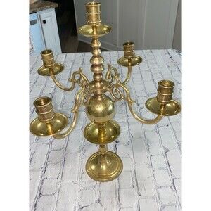 Vintage Dutch Brass/ Bronze Candelabra Holds 5 Candles. Preowned. Please reference attached pictures for style, condition and approximate size. Preowned Condition exhibits normal wear, oxidation, scratches, pitting and candle wax residue.