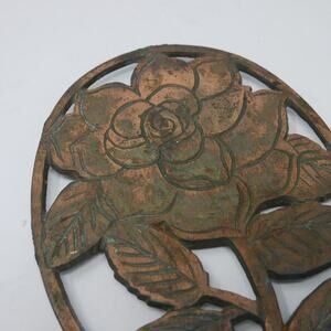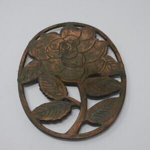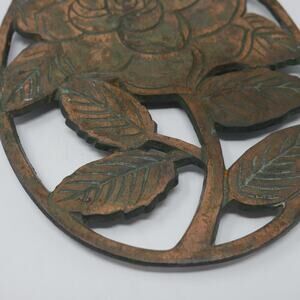 Vintage Dutch Copper Rose Trivet Made in Taiwan